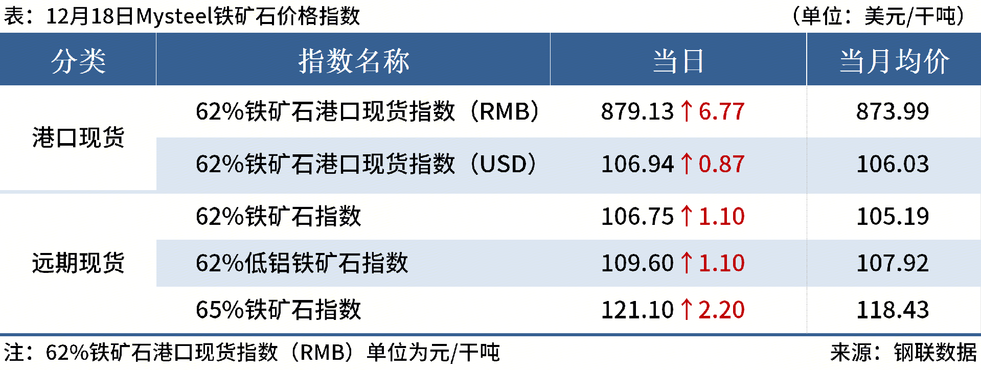 ◎12月18日,全國主港鐵礦石成交98.20萬(wàn)噸,環(huán)比增18.2%;237家主流貿易商建筑鋼材成交10.22萬(wàn)噸,環(huán)比增2.8%。