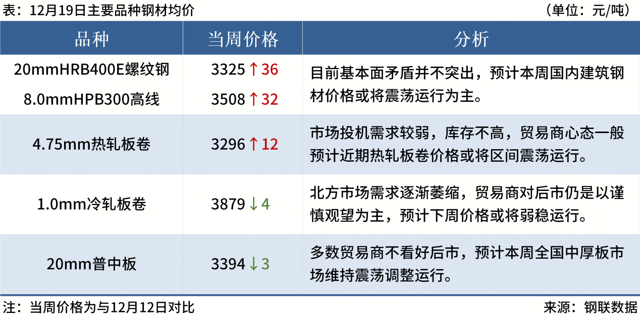 ◎ 12月19日,全國主港鐵礦石成交87.05萬(wàn)噸,環(huán)比減11.4%;237家主流貿易商建筑鋼材成交9.42萬(wàn)噸,環(huán)比減7.9%。