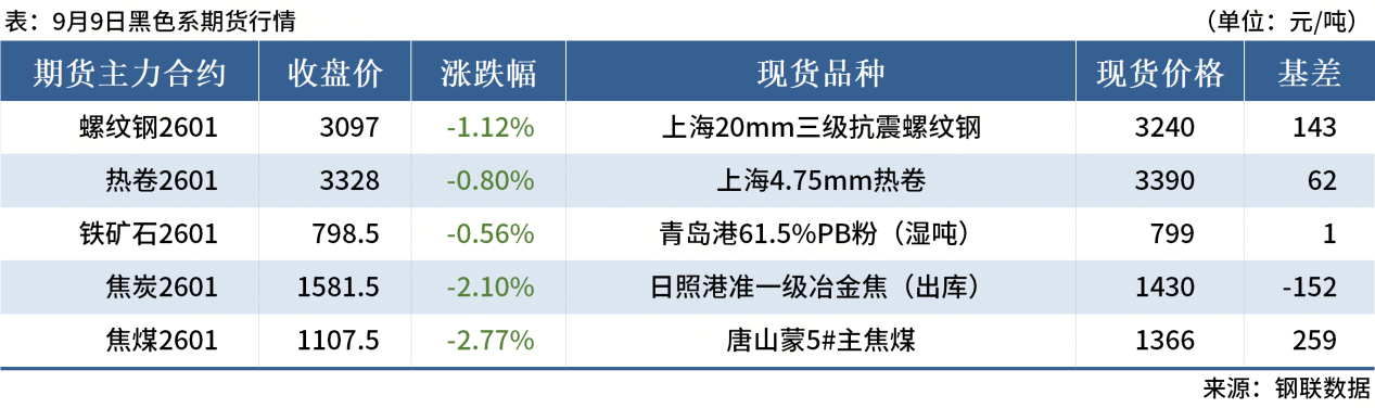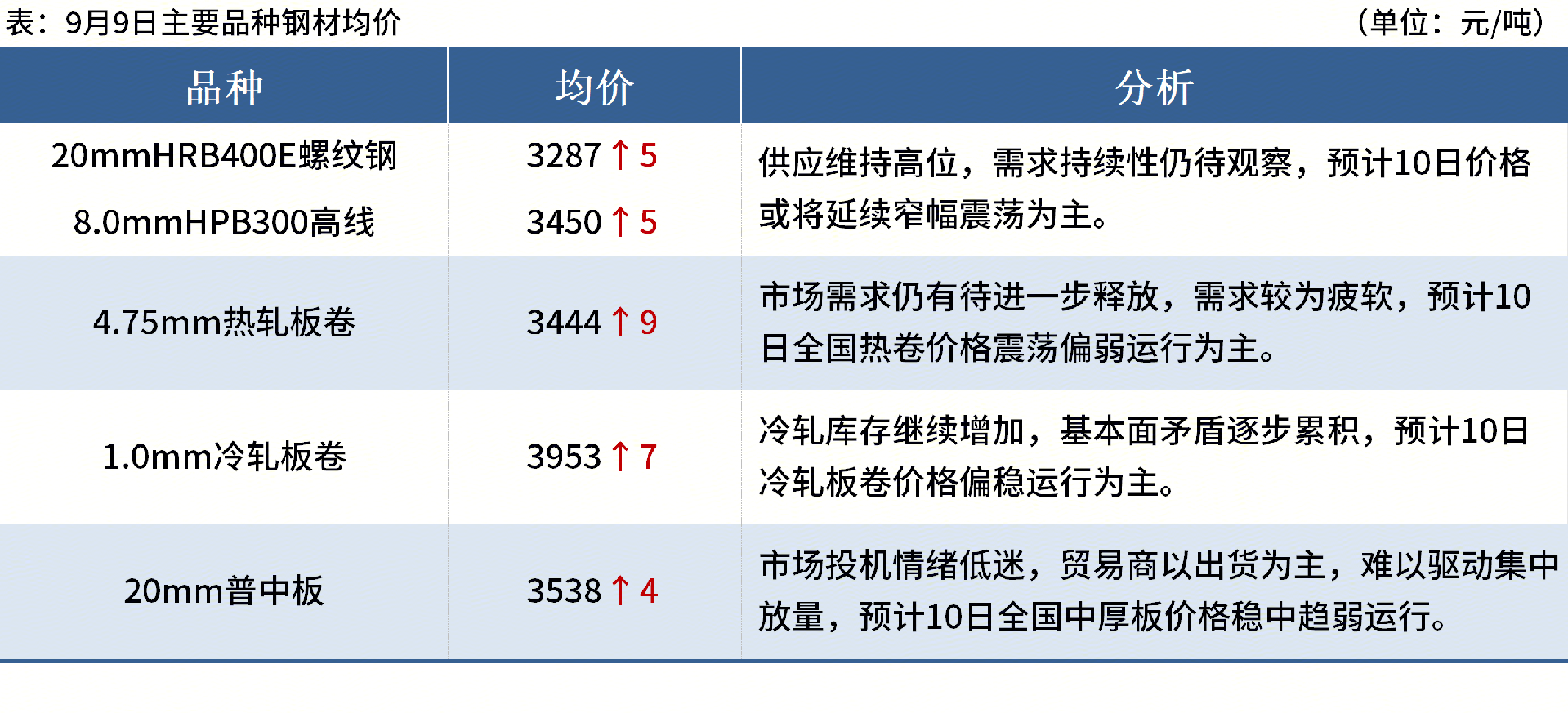 ◎9月9日,全國主港鐵礦石成交93.30萬(wàn)噸,環(huán)比減18.2%;237家主流貿易商建筑鋼材成交10.14萬(wàn)噸,環(huán)比減10%。