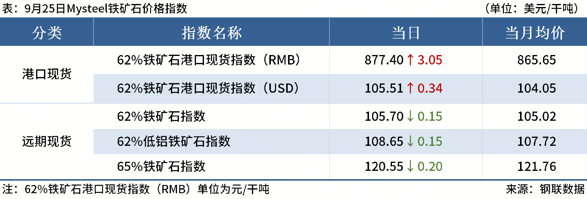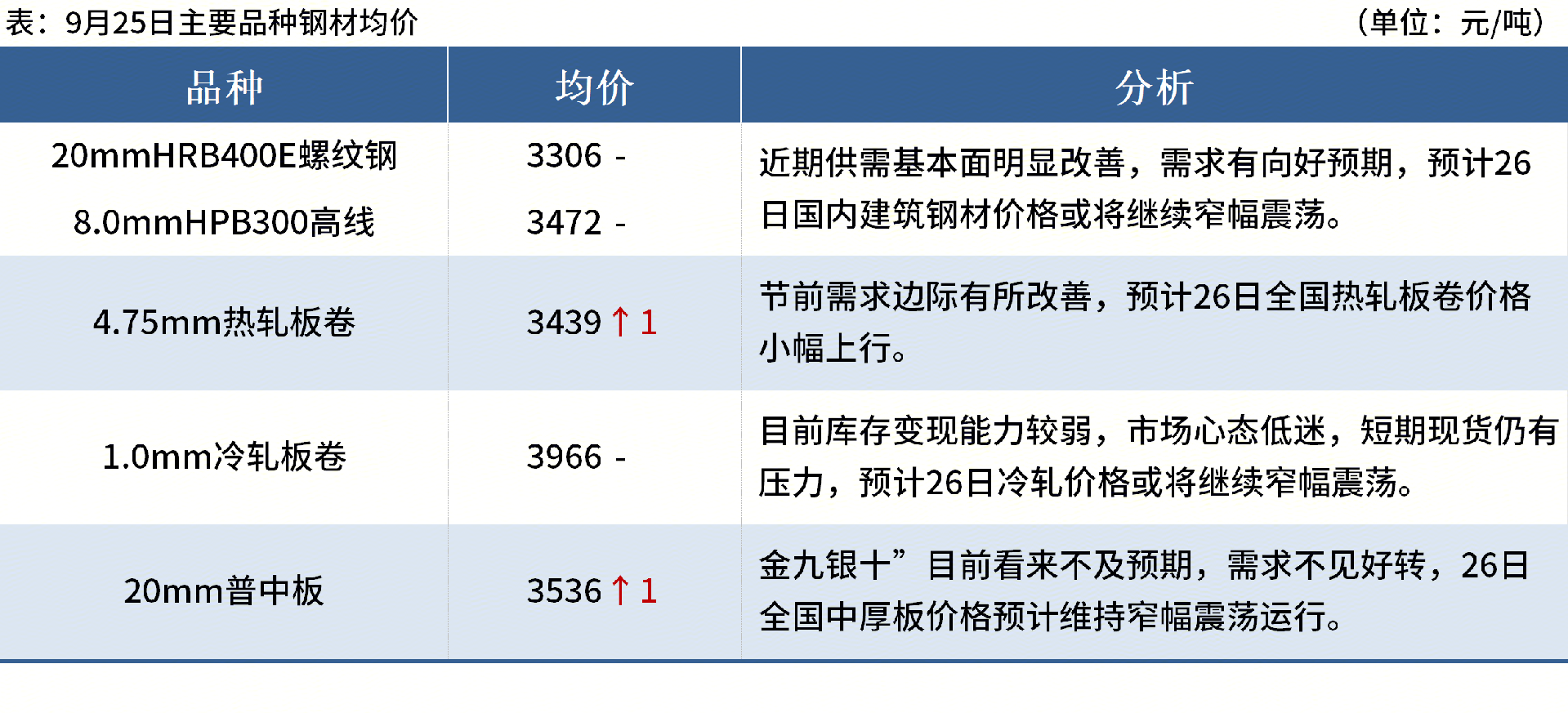 ◎9月25日,全國主港鐵礦石成交111.10萬(wàn)噸,環(huán)比減28.3%;237家主流貿易商建筑鋼材成交10.82萬(wàn)噸,環(huán)比增4.1%。