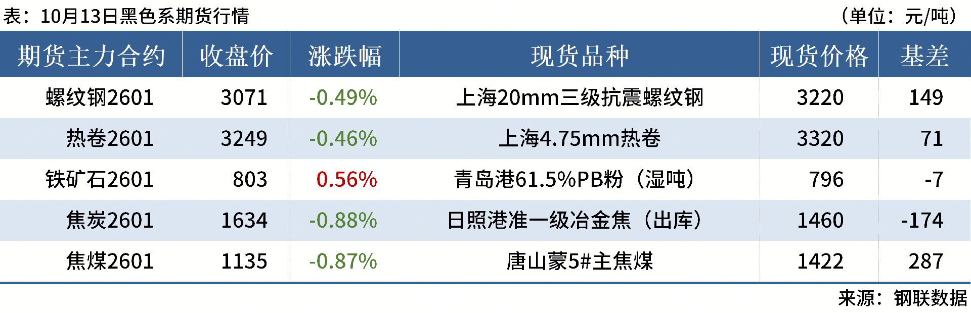 ◎ 10月13日,全國主港鐵礦石成交95.20萬(wàn)噸,環(huán)比增88.1%;237家主流貿易商建筑鋼材成交10.60萬(wàn)噸,環(huán)比增16%。