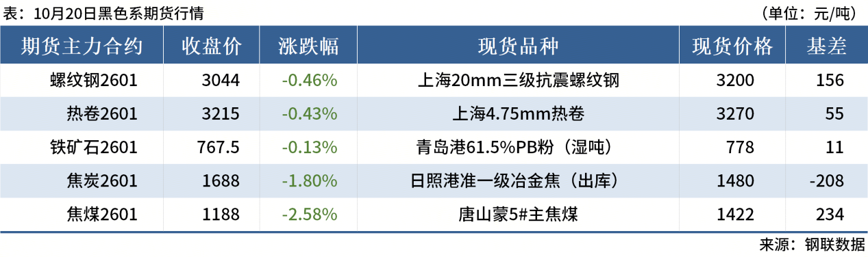 ◎10月20日,全國主港鐵礦石成交84.40萬(wàn)噸,環(huán)比減15.9%;237家主流貿易商建筑鋼材成交9.77萬(wàn)噸,環(huán)比增2.9%。