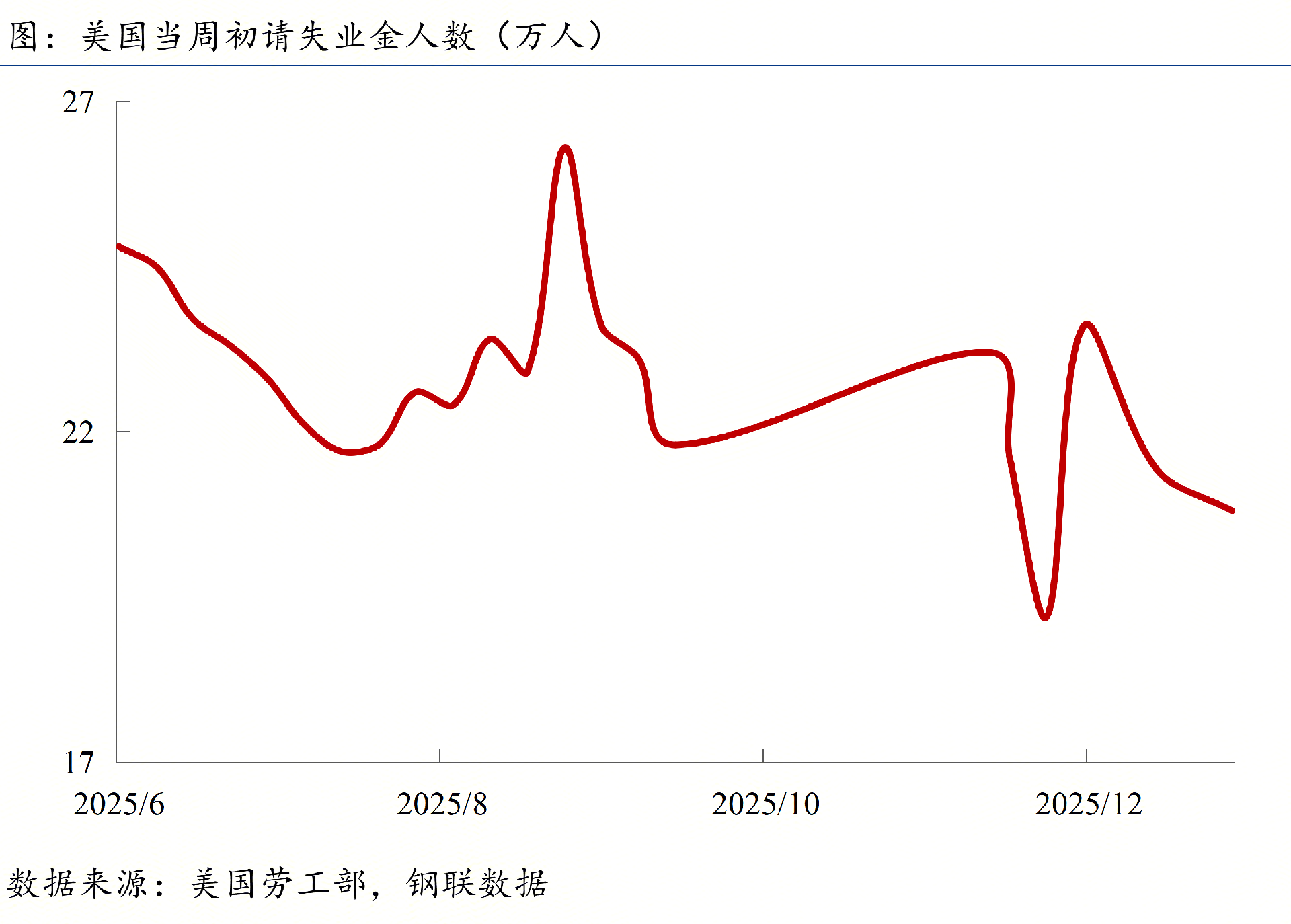 ◎美國(guó)勞工局最新數(shù)據(jù)顯示,截至2026年1月3日當(dāng)周,美國(guó)初請(qǐng)失業(yè)金人數(shù)為?20.8萬(wàn)人?,低于市場(chǎng)預(yù)期的21萬(wàn)人,仍處于歷史低位區(qū)間。