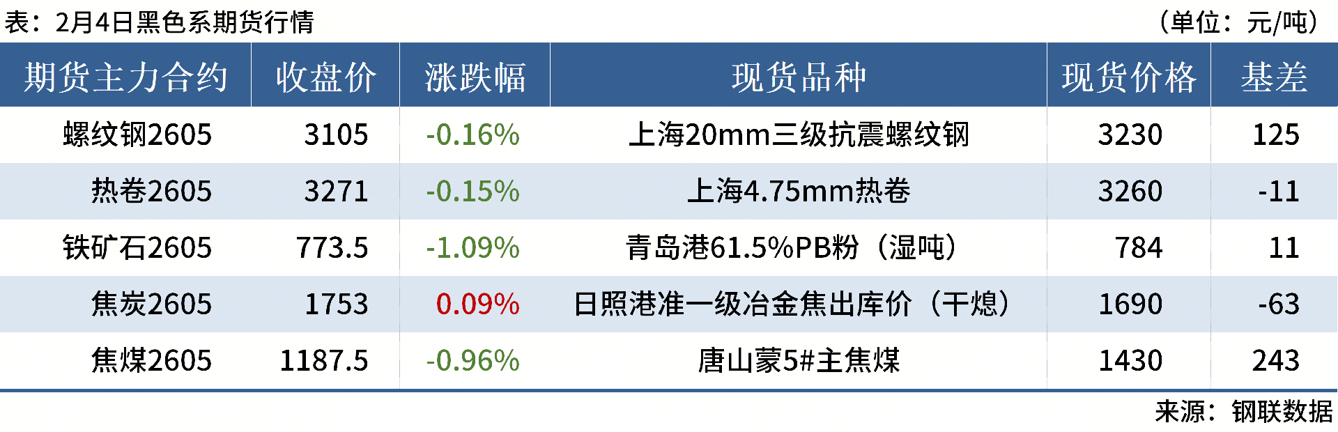 ◎ 2月4日,全國(guó)主港鐵礦石成交103.40萬(wàn)噸,環(huán)比增14%;237家主流貿(mào)易商建筑鋼材成交3.61萬(wàn)噸,環(huán)比減12.6%。